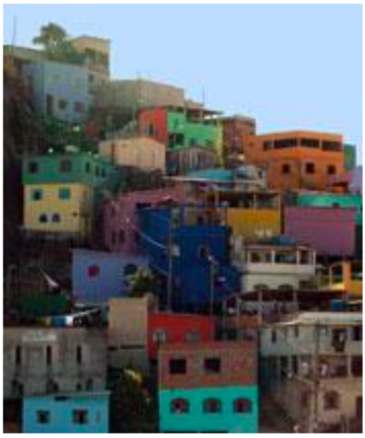 Podríamos afirmar que los barrios pobres presentan un mismo patrón de “paisaje de la miseria” en todas las ciudades de Colombia y de América Latina; son habitados por una población marginada y excluida de la ciudad moderna, su territorio tiene una alta densidad de ocupación, incluso en los retiros de las quebradas, no tienen zonas verdes, escasos espacios públicos y sus sistemas de movilidad son altamente restringidos. Tiene razón Jacobs (1995) cuando afirmó que “es casi universalmente cierto que la gente pobre vive en los peores entornos y que el medio ambiente degradado define la pobreza . (Ver siguientes imágenes.)