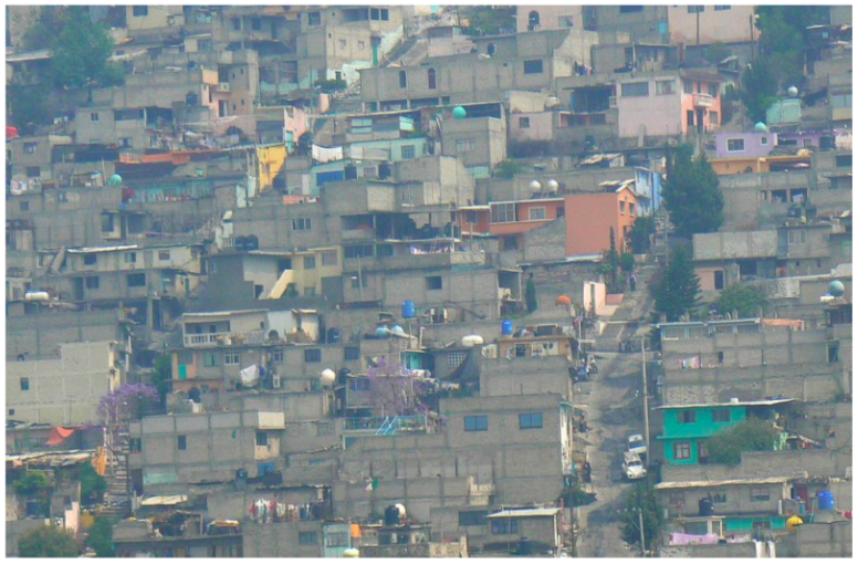 Por otro lado, se encuentran las áreas ocupadas por construcciones simples, con materiales de desecho, sin zonas verdes, inseguras, escasamente conectadas entre sí y con los centros económicos; son los lugares donde habitan las personas que no tienen capacidad económica, los marginados, los pobres, las víctimas del “desarrollo”.
